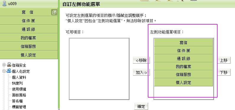 瀏覽信件版面一覽: 個人設定 > 使用環境 > 郵件